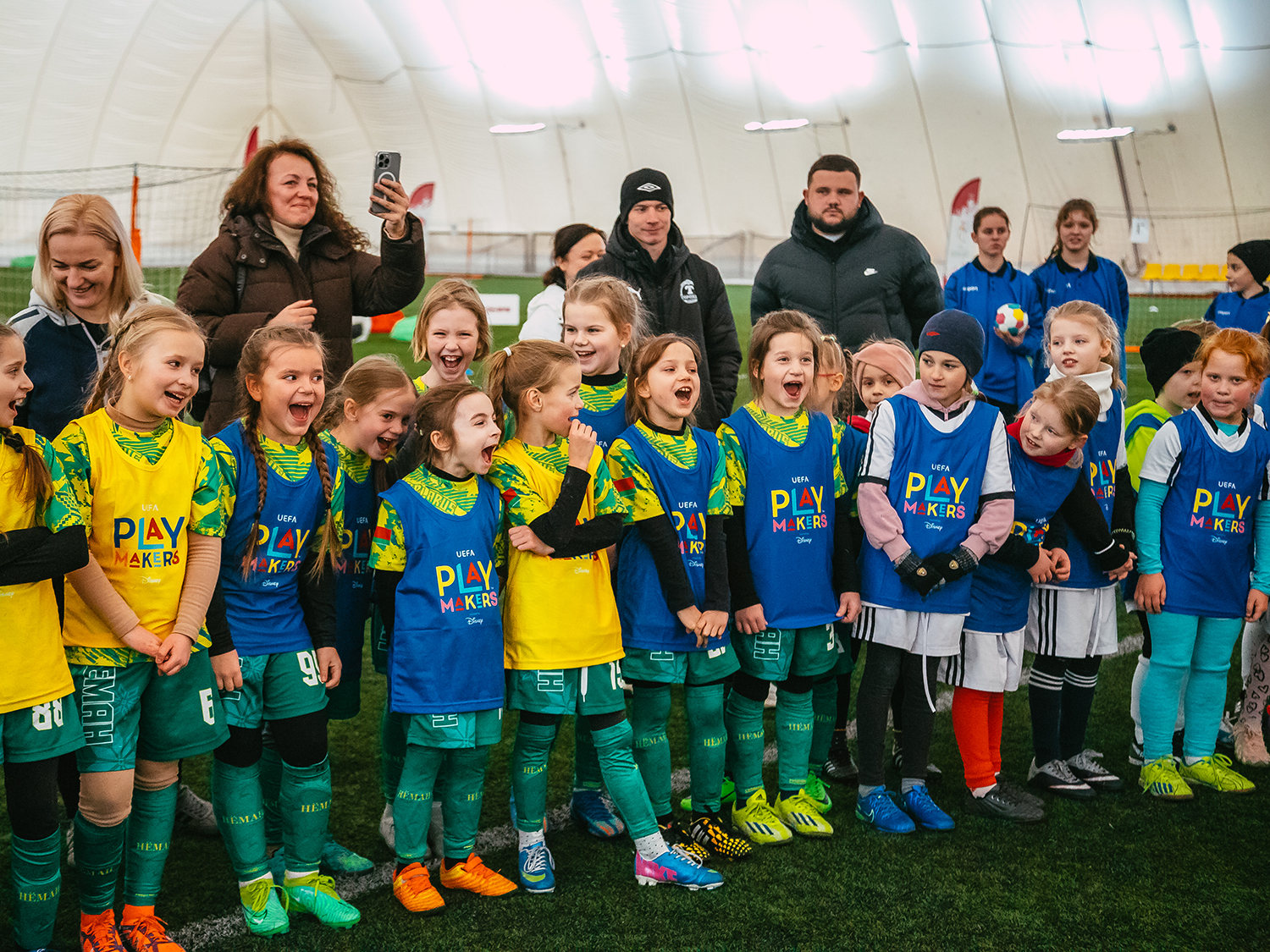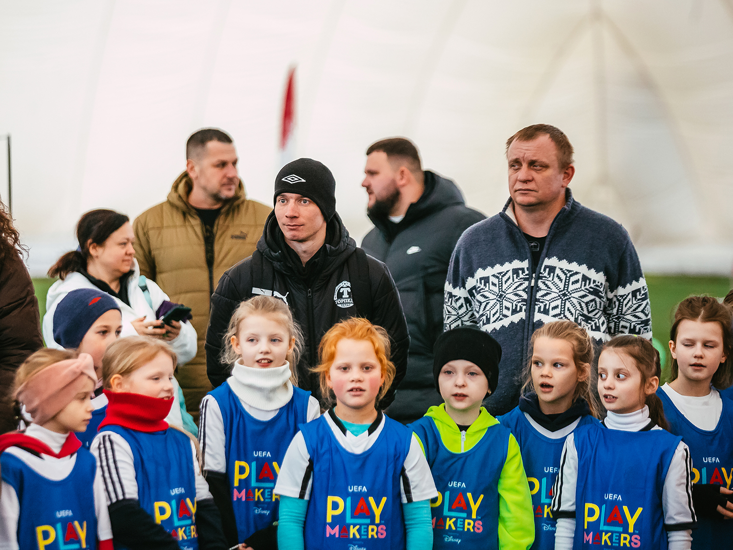 Торпедовские воспитанницы WU-10 со своим тренером Сергеем Ярошевичем 17 февраля приняли участие в футбольном фестивале UEFA PLAYMAKERS, проходившем в г. Минске.