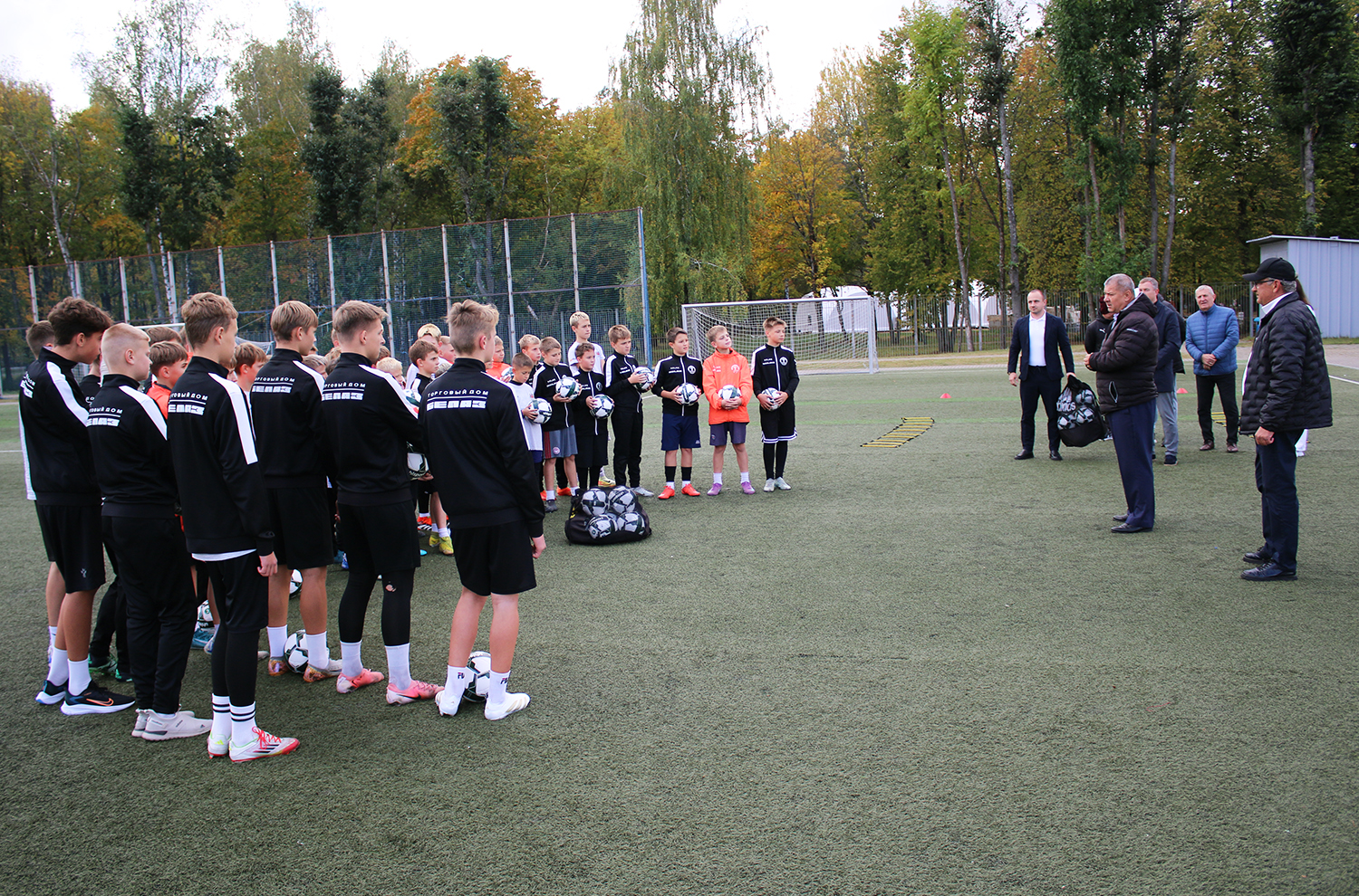 Директор «Евромарк Комплекта» Александр Томчик сегодня вручил новенькие мячи капитанам торпедовских команд. В свою очередь, директор ФК «ТОРПЕДО-БЕЛАЗ» Станислав Возняк поблагодарил спонсора за его вклад в развитие футбола и выразил надежду на то, что качественное улучшение тренировочного процесса непременно скажется на результатах выступлений юных футболистов.